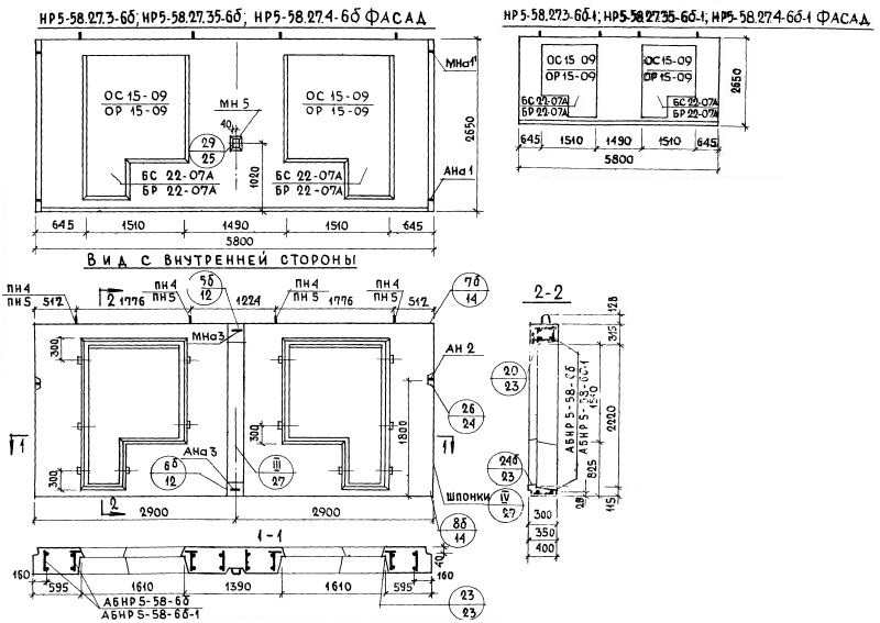 НР5-58.27.35-6б-1 Наружная стеновая панель рядовая по Серии 1.132-1.